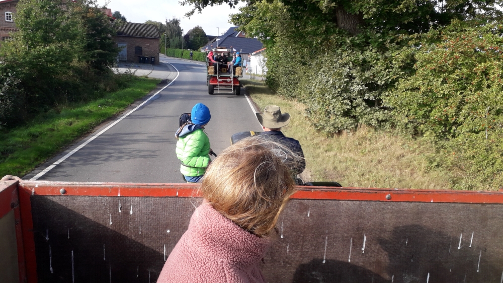 Wir starteten am 14. September 2025 mit zwei Treckern und etwa 30 Teilnehmern vom Jensens Obstcafé von Löstrup aus.